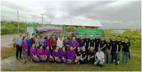 专家工作组和老挝女双手公司员工在示范园