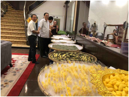 2018年11月16日至22日,应老挝有关方面邀请南通纺织丝绸产业技术研究院“高效集约化现代养蚕关键技术转移转化示范项目”暨“中老绿色丝绸中心蚕桑示范园”项目组参加了老挝一年一度的塔銮节盛会。塔銮节是老挝万象市规模最大、场面最隆重的传统宗教节日。项目积极响应国家“一带一路”战略倡议,发展新“丝绸之路”。通过以饲料代替新鲜桑叶养蚕,节约人力成本,提高桑蚕养殖的生产效率,在国内外率先实现养蚕现代化的转化示范,也为国内蚕桑丝绸生产拓展建立海外桥头堡。《中老绿色丝绸中心蚕桑示范园》位于老挝国首都万象市塞塔尼县萨帕卡农村(Saphakhanong village, Xaythanydistrict, Vientiane municipality),占地约10公顷,由华体会·官方版网站登录入口、老挝女双手公司、苏州大学和老挝国家科技部等单位合作共建,并得到老挝苏州大学等单位的大力支持。 中方融合了传统技艺与现代科技的“江苏现代蚕桑生产过程”展厅,吸引了众多市民参观。
